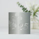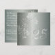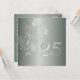 Elegante invitación de aniversario de bodas de plata con brillo en damasco plateado y toque floral. Con un sutil tono verde aqua, esta invitación formal elegante seguramente impresionará a sus invitados en su fiesta de aniversario de bodas de plata de Paper Expressions.
