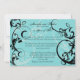 Tu familia y amigos encontrarán encantadora esta invitación de turquesa con un florecimiento negro. Tiene un fondo azul aqua turquesa con diseños de remolino floral negro y azul claro. Es una hermosa invitación para tu aniversario de bodas o evento.
