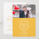 Simple esquema corazón efecto piedra arte gráfico de línea amarilla y blanca agregar su propia foto invitaciones de aniversario de bodas 7. Personalice con los detalles de su fiesta de bodas 7 y una fotografía de su pareja de aniversario. El aniversario de bodas número 7 está asociado con la piedra preciosa zafiro amarillo y el corazón simboliza el amor. Gráficos y diseño de Sarah Trett para www.mylittleedenweddings.com en zazzle.