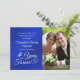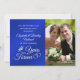 Celebre un aniversario de bodas de zafiro (5, 45 o 65) con esta elegante invitación de foto azul zafiro y blanca que presenta un diseño de tipografía de letra caligráfica # AÑOS EN PARA SIEMPRE para sus años de casados, acentuado con corazones entrelazados e interconectados y 2 fotos (una en cada lado, tal vez fotos de Entonces y Ahora para un recuerdo memorable). Contacte al diseñador a través de Zazzle Chat o makeitaboutyoustore@gmail.com si desea que este diseño sea modificado o en otro color, en otro producto o si desea artículos coordinados.