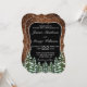 Tarjeta de invitación al aniversario del boda. Madera rústica marrón, fondo de nieve y bosque nevado. Acogedor estilo rústico vintage. Hay más artículos disponibles en este estilo en nuestra tienda. Puede editar el diseño más adelante, cambiar colores, fuentes y añadir texto extra haciendo clic en el enlace "personalizar más adelante".