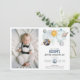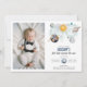 Celebra el hito especial de tu hijo con esta mágica invitación de cumpleaños temática en el espacio exterior. Con planetas imaginarios, luna y estrellas en la marina y en el color dorado. Pon la foto de tu bebé en la invitación. Estas Galaxy Sun Moon Stars and Planets Invitation de cumpleaños del Espacio Ultraterrestre son perfectas para una simple fiesta de cumpleaños. El diseño moderno y caprichoso pone de relieve un fondo acuático azul marino adornado con un sol amarillo vibrante, una luna gris sonriente, planetas de colores pastel y estrellas doradas dispersas en el resplandor. Foto del bebé generada por Freepik.