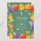Este diseño forma parte de la colección de cumpleaños "Dancing Fruit" para niños. Cuenta con adorables papelería con acuarelas de frutas tropicales como papaya, uvas, fresas, naranjas y piñas, además de hojas y notas musicales. Perfecto para las celebraciones de cumpleaños de un niño o chica.