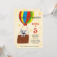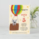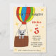 Invitación al cumpleaños del gato en globo aerostático. Dibujo de un lindo gato volando en un globo de aire. Ideal para el cumpleaños del chica o del niño. Añade tu información de cumpleaños.