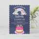 Invitación Aniversario del globo de arco iris de la dinosauri