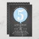 Invitación a la fiesta de cumpleaños del niño con globo azul rustico negro de cartulina - AÑO PERSONALIZADO