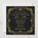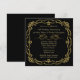 Esta es una elegante invitación para la celebración del 50 aniversario tan especial como la pareja que se celebrará. Cuenta con un borde ornamentado con brillo dorado falso con su texto personalizado en el medio. La parte superior del texto dorado claro está separada de la parte inferior por un floreo caligráfico, también en dorado. La parte posterior de la invitación es negra sólida a juego. ¡Muy elegante! *Agradecemos especialmente a Dana Conditt por el uso de su obra de arte en este diseño.