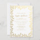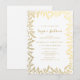 NOTA IMPORTANTE: esta cenefa de hojas doradas está hecha con una imagen impresa de papel de aluminio dorado. Las invitaciones finales no tendrán relieve en dorado; si desean invitaciones personalizadas con relieve en dorado, costarían al menos 3 veces más, así que esta es la alternativa económica y aún así elegante y llamativa. ¡Aquí tienen una invitación moderna, contemporánea, informal y divertida para una boda de aniversario de bodas doradas que todos notarán!