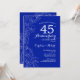 Invitación de fiesta de aniversario de bodas de Zafiro Floral 45 años. Diseño moderno minimalista con acentos de dibujos de contorno botánico y fuente de escritura tipográfica. Tarjeta de invitación elegante perfecta para una celebración con estilo. Se puede personalizar para cualquier año de matrimonio. Impreso en invitaciones de Zazzle o plantilla digital descargable instantáneamente.