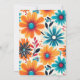 Una invitación de aniversario de fiesta retro groovy. Este diseño floral colorido de la vibra de los 60's presenta flores de poder floral en naranja y azul. Fácil de personalizar con tus propios detalles de fiesta de aniversario de boda con tema groovy o retro.