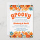 Invitación Aniversario Groovy Vibra Floral Retro de los 60