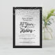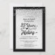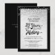 Invite a sus invitados a una boda de plata aniversario 25 AÑOS EN CREACIÓN. El diseño en plata y negro con luces de cuerda blancas en el borde presenta tipografía retro con su año de boda integrado en el diseño. Póngase en contacto con el diseñador si desea que este diseño se modifique o en otro producto para coordinar con el conjunto de su fiesta.