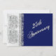 Esta es una elegante invitación de aniversario de bodas número 25 en azul marino con trabajo de pergaminos en relieve de plata falsa sobre papel plateado metálico. Si necesita otros artículos que coincidan con este diseño, o si lo prefiere en un color diferente, por favor envíe un correo electrónico a niteowlstudio@gmail.com. La tarjeta de respuesta coincidente se muestra a continuación.