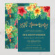 ¡Celebre su aniversario número 35 de bodas con estilo con esta invitación tropical moderna! Elegantes flores de hibisco y hojas de palma en rojos, naranja y verde tropicales en acuarela. Personalice fácilmente para su fiesta utilizando los campos de plantilla para agregar su información.