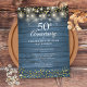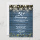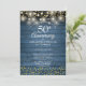 Con preciosas luces de hadas y delicado confeti de corazones de amor dorados sobre un fondo de paneles de madera rústica azul. Personalice con la información de su aniversario de oro de cincuenta años en letra chic. Diseñado por Thisisnotme©