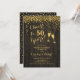 Invitación de aniversario de bodas de oro número 50 rústica dorada. ¡Salud por 50 años! Diseño elegante con patrón de madera marrón oscuro y dorado brillante. Cuenta con copas de champán, letra script y confeti. Perfecto para una celebración con estilo de 50 años de matrimonio. Impreso en Zazzle o plantilla digital para descargar instantáneamente. ¡Se puede personalizar para mostrar cualquier año! Personalice con sus propios detalles.