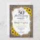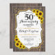 Invitación Aniversario número 50 Rústico - Girasoles Madera D