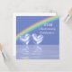 Invitación de aniversario de diamante número 60 con un arcoíris en un cielo azul claro y dos corazones de diamante brillantes flotando en el agua. Personalice el texto de ejemplo en la parte posterior con su propia información para su evento.