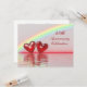 Invitación de aniversario de rubí 40 con un arcoiris y dos corazones rojos de rubí brillantes flotando en el agua. Personalice el texto de ejemplo en la parte posterior con su propia información para su evento.