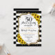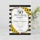 Invitación dorada de bodas de oro. Invitación floral con girasoles, rayas negras y blancas y falso brillo dorado. Perfecta para una elegante celebración de aniversario. Personaliza con tus propios detalles.