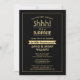 ¡Shhh! ¿Puedes guardar un secreto? Invite a la familia y amigos a una elegante y emocionante celebración de aniversario con invitaciones para fiestas personalizados en negro y oro. Todo el texto de esta plantilla es sencillo de personalizar o eliminar, incluido el mensaje que dice "¡Shhh! Es una SORPRESA". El diseño presenta una tipografía clásica de arte vintage, caligrafía de escritura elegante y un sencillo borde moderno. Tenga en cuenta que el oro es color impreso, no Relieve metalizado metálico. ¡Felicitaciones y Feliz Aniversario!