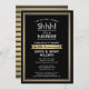 ¿Puedes guardar un secreto? Invite a la familia y amigos a una elegante y emocionante celebración de aniversario con invitaciones personalizados en Relieve metalizado negro, blanco y falso oro. Todo el texto de esta plantilla es sencillo de personalizar, incluyendo el mensaje que dice "¡Shhh! Es una SORPRESA". El diseño presenta un moderno borde a rayas, una tipografía clásica de arte vintage y una caligrafía de escritura elegante. Tenga en cuenta que el oro es de color oscuro impreso, no de Relieve metalizado metálico. ¡Felicitaciones y Feliz Aniversario!