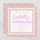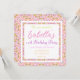 Invitaciones al cumpleaños verde de primavera rosada de verano de los chicas. Una divertida y colorida tarjeta de invitación cuadrada para que tu hija se entregue a sus amigos y familia para invitarlos a su fiesta de cumpleaños. Cambie el texto por el suyo propio utilizando el botón Personalizar. O edite los colores y el diseño en la herramienta de diseño. Los colores del texto se extraen de los colores del borde con motivos geométricos. Los colores de la frontera funcionan durante los cumpleaños de primavera y verano. El texto contiene todos los detalles importantes, como el nombre, la edad, la hora y la fecha del niño de cumpleaños y la ubicación del lugar del fiesta. Una alegre invitación a una importante celebración. La parte posterior de las invitaciones muestra un patrón de bonito, que puede conservarse como una bonita decoración de pared o un conservante decorativo por parte del destinatario. Descarga como una invitación digital.