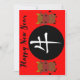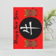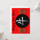Carácter chino para el año del x en blanco sobre círculo rojo con animal ilustrado personalizado sobre fondo rojo.