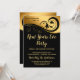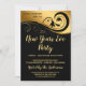 Tipografía dorada elegante y fondo negro con textura, invitación para la fiesta de Nochevieja. Esto se puede personalizar para satisfacer las necesidades de su invitación de fiesta. Esta invitación se vería genial como una fiesta navideña, o celebración de aniversario dorado.