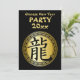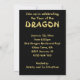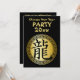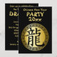 Celebra el Año del Dragón con un fiesta e invita a amigos y familiares con este llamativo diseño que presenta el símbolo chino (o kanji japonés) para dragón rodeado por un adorno marco redondo de estilo oriental sobre un fondo dorado y negro. Todo el texto es totalmente personalizable para su propia ocasión.