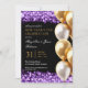 Invitación Años nuevos Eve Purple Shimmering Luces Globos
