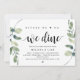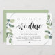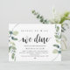 Tarjeta de invitación temática Modern Rustic Greenery Eucalyptus,, Black Script (con título de tarjeta: ¡Antes de hacerlo, cenamos!). Es perfecta para la celebración de la cena de ensayo de su boda, antes de su mejor día. Agregue sus detalles en fuente / letra negra coincidente.