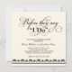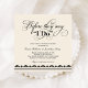 Esta clásica invitación de cena de ensayo en formato cuadrado presenta la frase "Antes de que digan que sí" en dramática caligrafía negra con florituras de volutas que se deslizan sobre un cálido fondo marfil. Una tira de borde de damasco negro en la parte inferior añade un toque de sofisticación final. Todos los nombres, fechas y detalles del evento son totalmente editables. Una elección elegante para una cena de ensayo de boda formal o clásica.