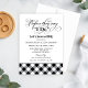 Haz una declaración audaz con esta llamativa invitación a la cena de ensayo "Antes de que Digan 'Sí, Acepto' — Vamos a hacer una BBQ" en clásico negro y blanco. La tipografía de guión negro dramática y el borde de cuadros negros en negrita crean un diseño gráfico de alto contraste con un atractivo atemporal. Todo el texto es totalmente editable para los detalles de su evento. Una elección elegante para parejas que quieren un enfoque chic y moderno para una barbacoa casual de ensayo.