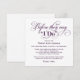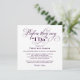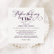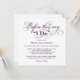Elegante y sofisticada invitación de bienvenida a la fiesta de boda para dar inicio al fin de semana de la boda con un encabezado de letra de caligrafía: Antes de que digan "Sí acepto". Diseño cuadrado. Esquema de colores púrpura berenjena y blanco.