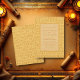 Celebra tu historia de amor con la antigua elegancia a través de esta invitación de boda egipcia, inspirada en la rica historia del Antiguo Egipto. Diseñada en un estilo de papiro con lujosos acentos dorados y motivos jeroglíficos, esta invitación le da un sentido de realeza y romance a su día de bodas.