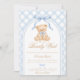 Dulce y clásico, esta invitación de baby shower "apenas podemos esperar" presenta un adorable osito con lazo azul sobre un suave fondo de gingham azul, una opción perfecta para una baby shower de osito para niño. El patrón de cuadros azules y la encantadora ilustración del oso hacen que esta invitación sea una opción entrañable y atemporal para una celebración de baby shower de niño "apenas podemos esperar".