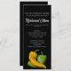 Invite a los huéspedes a asistir a la gran inauguración de su nuevo y limpio establecimiento con la Gran Invitación al Restaurante Two Peppers. Perfecto para un excelente restaurante especializado en un saludable menú de comida con verduras frescas, comida orgánica o barra de ensaladas. Personalízalo con el nombre de su negocio, la línea de etiquetas y los detalles del evento. Esta invitación personalizado muestra una fotografía de cerca de dos pimientos de jardín entrelazados en amarillo y verde sobre un fondo negro.