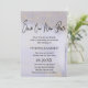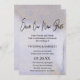 Elegante Salven nuestra nueva tarjeta de fecha para que amigos y familiares sepan que han pospuesto a su boda. Un lavado suave de color morado y azul como acento purpurina de oro. Save Our New Date se escribe en la parte superior con una fuente moderna y de moda.