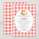 Celebrate the upcoming arrival with this sweet “Apple of Our Eye” baby shower invitation. This charming design features a watercolor apple with delicate blossoms and a gingham bow, set against a classic red gingham background for a warm farmers market–inspired look. The elegant scalloped frame and soft script typography create a timeless, rustic style perfect for a fall baby shower, apple-themed shower, or farmhouse baby shower celebration. Easily personalize the text with your event details to create a memorable invitation for friends and family.