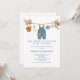 Celebrate the baby boy who’s already the apple of everyone’s eye. This sweet invitation features a whimsical clothesline with blue overalls, baby shoes, bib and charming apples, creating a warm and playful design. Easily personalize with your own event details for a memorable baby shower celebration.