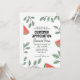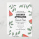 Esta invitación de picnic de verano de Apreciación del Cliente incluye un borde de cuñas de sandía y ramas de hojas verdes. Personalice esta sencilla invitación temática de verano con todos sus detalles del evento.