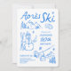 Plan a memorable Après Ski birthday party on the slopes! This hand drawn illustration features a beautiful ski slopes, snowflakes, ski lift and snowman illustration in blue. Edit the template with your event details. Customize for a milestone sweet 21st, 30th, 40th or 50th birthday celebration.