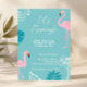 Invitación Aqua & Pink Flamingo Tropical Birthday