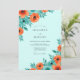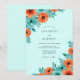 This design features a bright aqua background adorned with vibrant watercolor florals. Lustrous orange poppies and deep teal blossoms are clustered with lush green leaves to create a refreshing botanical aesthetic. The airy color palette creates a cheerful mood perfect for a breezy outdoor spring or summer event.