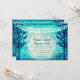 Romántico Rústico Aqua Turquoise Árboles Verde azulados Encender invitaciones de matrimonio con dos árboles en cada extremo de la invitación con hilos de luces en la parte superior y brillantes luces de hadas en el fondo. Estos son ideales para un boda por la noche o para cualquier invitación rústica a una boda de campo con los colores de aqua o boda verde azulado o turquesa. La parte posterior también está a todo color y se puede agregar información adicional a la plantilla mediante el botón "Personalizar", por ejemplo, si necesita agregar la información del sitio web de su boda. Elementos del juego de Bodas coincidentes: