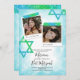 La invitación a Bat Mitzvah, estilo libro de cricket, incluye obras de arte turquesa, acuática y purpurina verde. Las fotos cuadradas con estrellas de las obras de arte de David en papel desmitificado es una hermosa imagen vintage para la celebración de tu cumpleaños. Las leyendas de las fotos pueden cambiarse a cualquier texto hermoso que elija. Carga fácilmente tus fotos en los marcos de fotos.