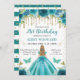 Invitación Aqua y Verde azulada princesa rubia de vestir 21º
