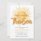 Invite a la familia y amigos al bebé de su chico con temática solar con esta encantadora invitación. Está decorado con una tipografía elegante y un sol de color amarillo acuático. La parte trasera está decorada con un patrón solar. Personalizable fácil. Acuarela original © Michele Davies.