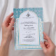 Invitación Arabesco Verde Acuático y Blanco Perla Boda Islámi
